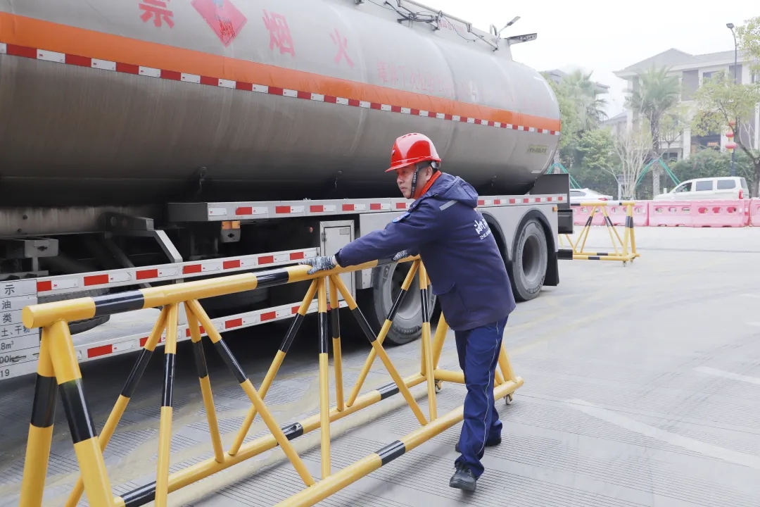 浙石油温州乐清云门站站经理钱小龙,做好隔离防护,确保卸油安全。 郑艺帅 摄