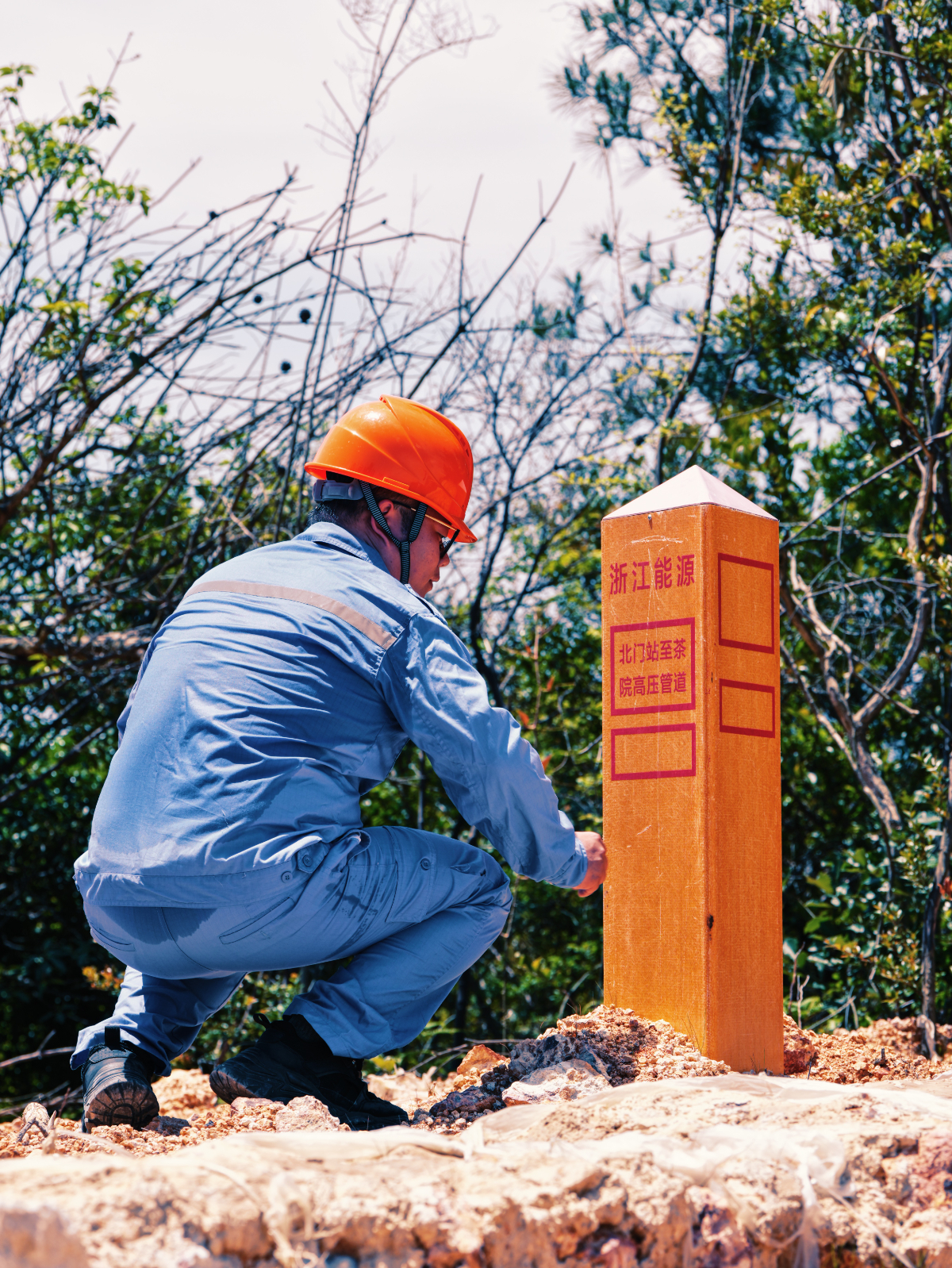 188bet金宝博 燃气宁海公司巡线人员检查北门站至茶园高压管线标志桩。 宁海公司 提供
