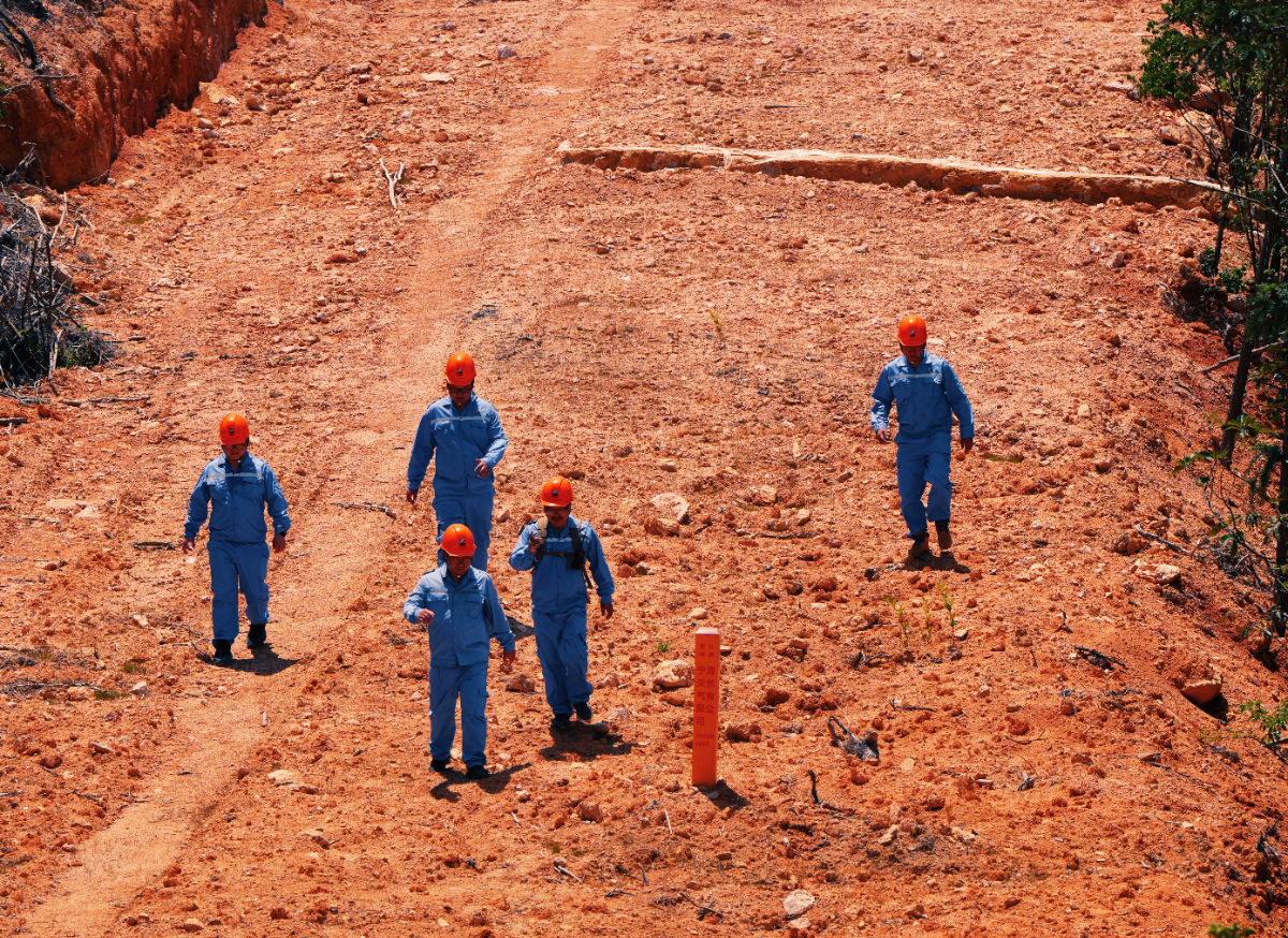 为确保施工安全,巡线队员与第三方施工单位紧密配合。 宁海公司 提供