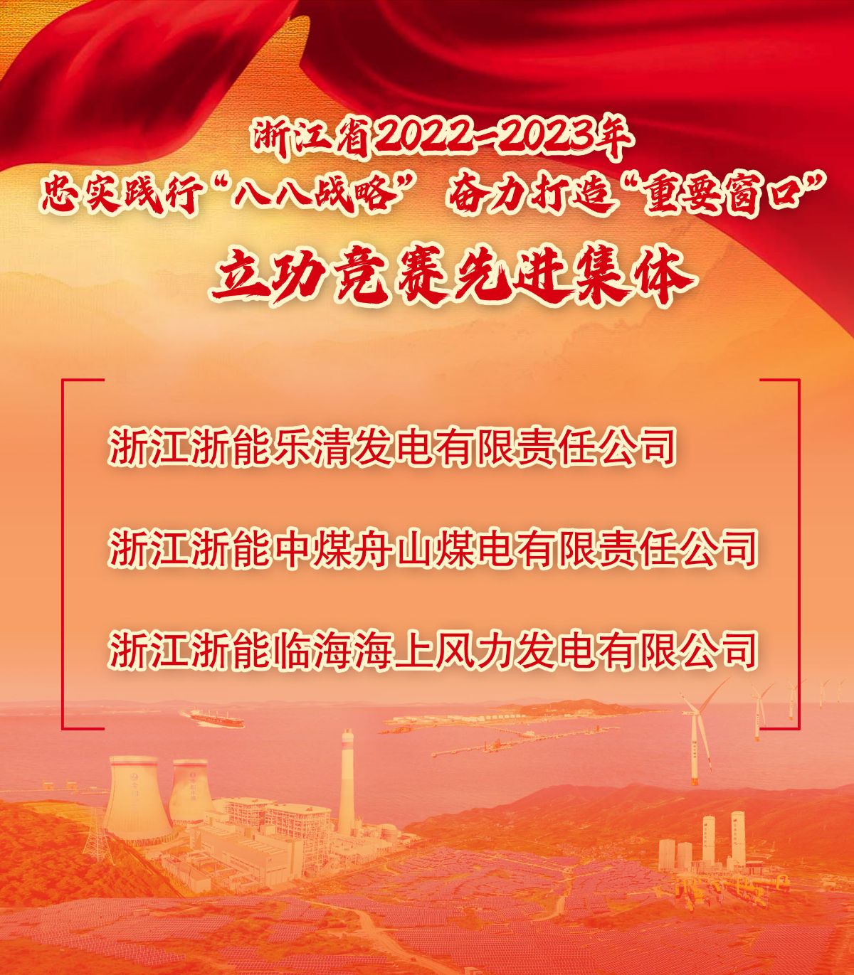 日前,浙江省人民政府公布2022-2023年忠实践行“八八战略” 奋力打造“重要窗口”立功竞赛先进集体和先进个人名单,对100个先进集体和200名先进个人予以通报表彰。188bet金宝博 所属乐清发电公司、舟山煤电公司、临海海上风电公司荣获先进集体。