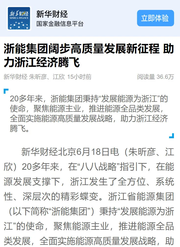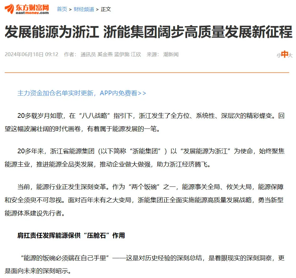 6月18日,东方财富网报道《发展能源为浙江 188bet金宝博 阔步高质量发展新征程》。