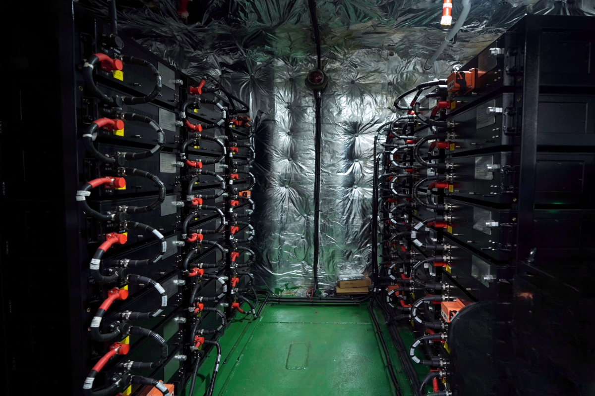 “油改电”货船电池间内电池组。 邵子谦 摄