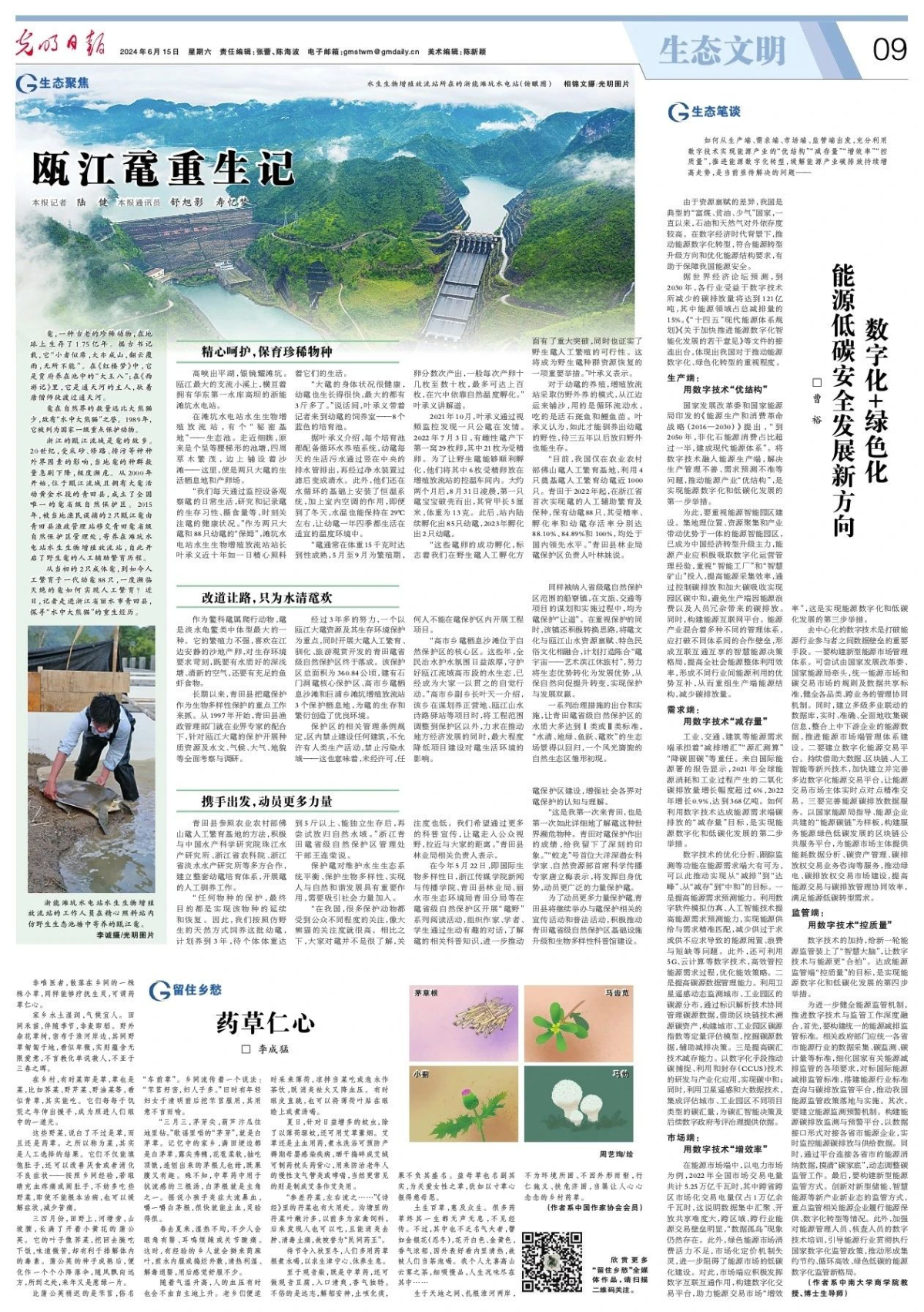 6月15日,光明日报报道《瓯江鼋重生记》。 祝益军 提供