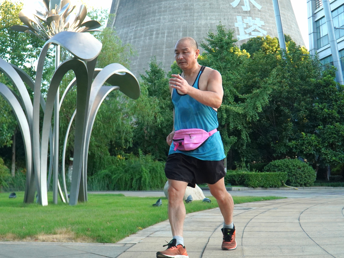 鲍伟明在188bet金宝博 兰电厂(生活区)区内跑步锻炼。 何云玲 摄