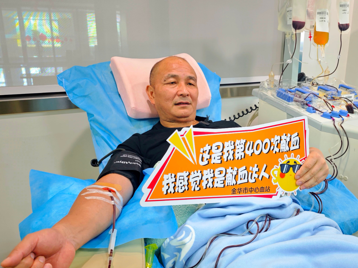 7月31日,鲍伟明早早地来到金华中心血站进行第400献血。 何云玲 摄