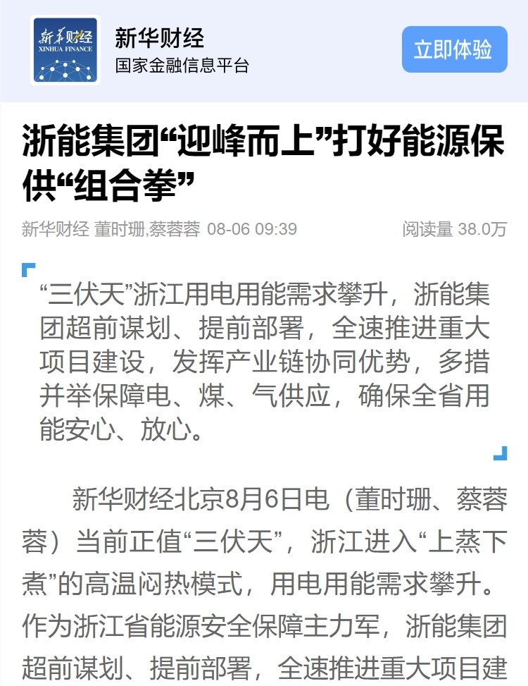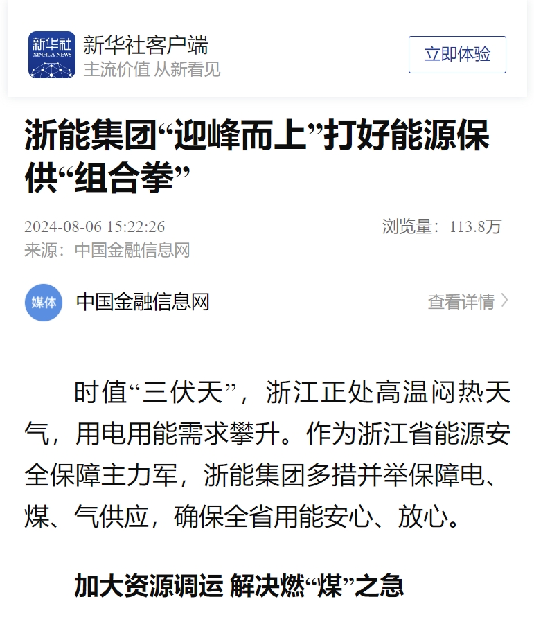 新华社客户端、新华财经客户端报道《打好迎峰度夏“组合拳” 188bet金宝博 持续提升能源保供能力》。