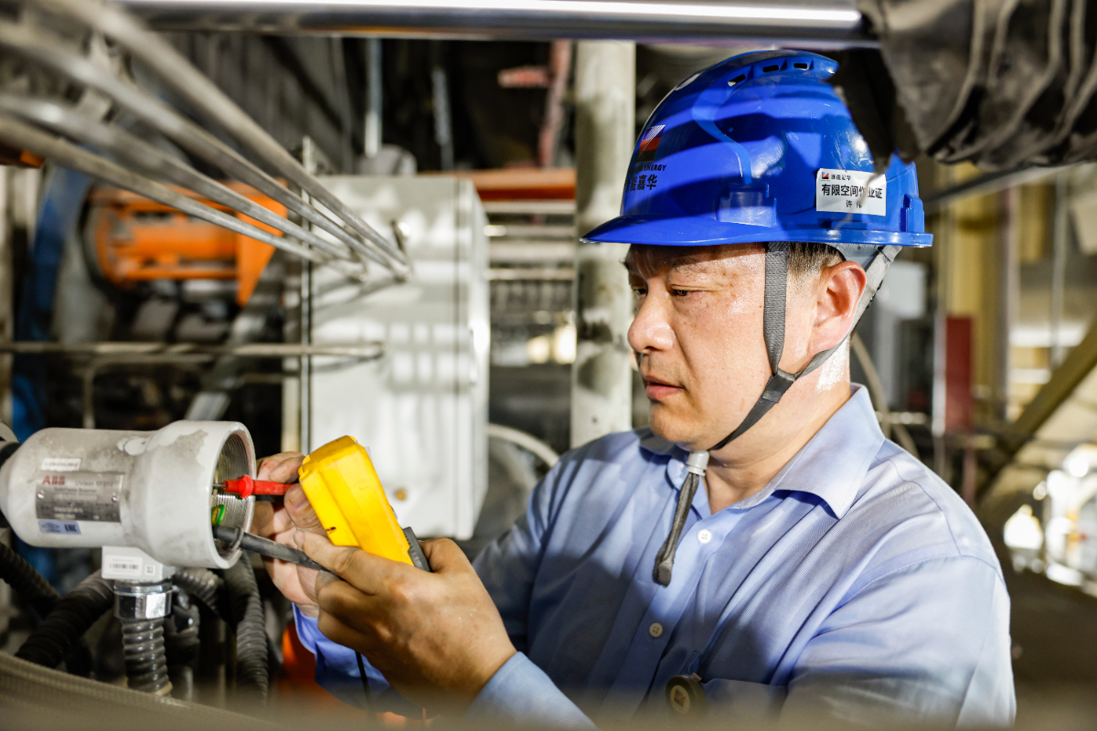 188bet金宝博 嘉兴发电厂仪控一班工作人员正冒着高温进行设备消缺工作。 王重阳 摄