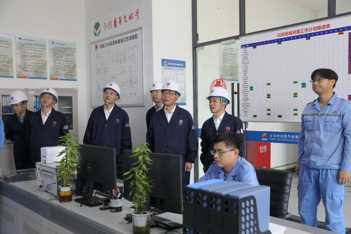 刘盛辉来到苏溪LNG应急储备站,详细了解防火防爆、天然气保供等工作情况,充分肯定义乌公司前阶段工作成效,亲切慰问在高温天气下坚守岗位的各位干部职工,叮嘱大家要紧绷思想之弦、扛起应尽之责、守住安全底线,确保安全生产和能源保供平稳有序。