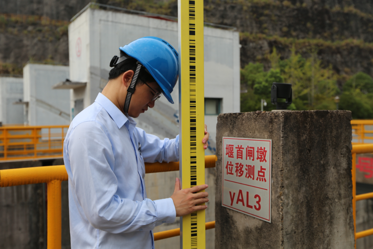 机组顶峰的响应迅速、组织有序、运行平稳,背后是一群水电人的严阵以待。早上5点30分,水工观测班职工王琪、蔡建林、孙纪辉、朱鸿杰等青工已到达大坝观测点,开始测量水工建筑物的各项维度。“提早测量,不仅可以减少气温、折光对测量误差的影响,还能避免高温作业。”蔡建林介绍说。
