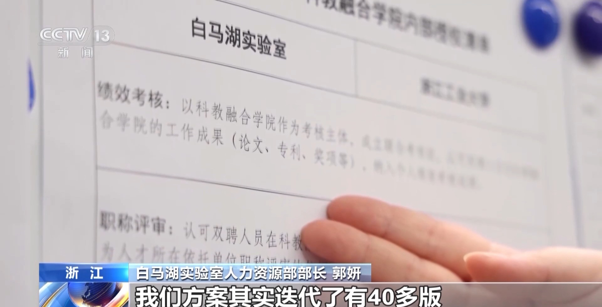 白马湖实验室人力资源部部长 郭妍:我们方案其实迭代了有40多版,最终我们是在科研人员比较关心的绩效考核、职称评审、学生培养、项目立项等方面授权清单,都给到了最大的体制机制的保障和政策的松绑。