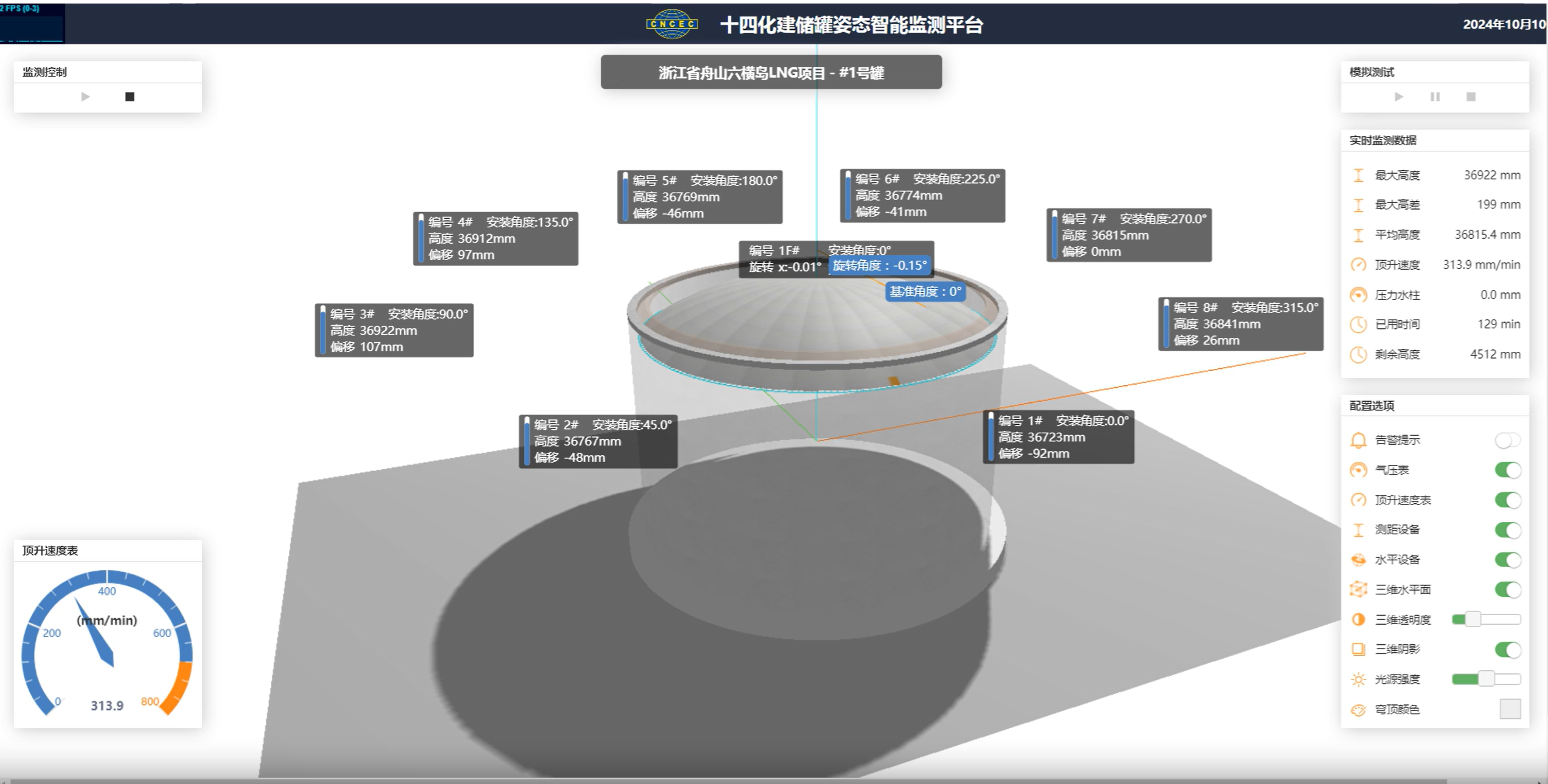 为确保“钢帽”升起均衡平稳,188bet金宝博 舟山六横LNG接收站使用了“硬核科技”——数智化顶升系统。该系统主要依托遍布罐体的“神经”——传感器,实时收集风压、平衡钢丝绳的拉力值以及顶升方位和速度等信息,并通过三维可视化智控软件,实现风压智能控制、拱顶智能配重、顶升方位智能纠偏等功能,大幅减少了人工操作可能带来的误差,让整个气顶升过程精准、智能、安全。