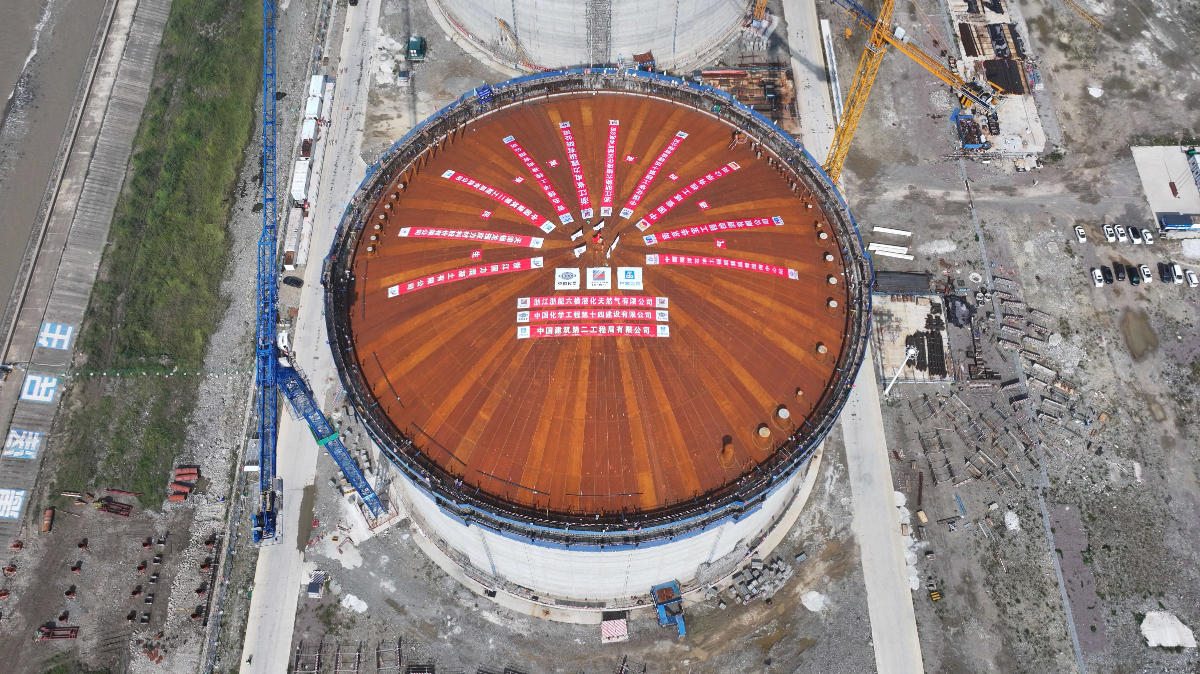 数智“升顶”!188bet金宝博 六横LNG接收站储罐气顶升全面完成