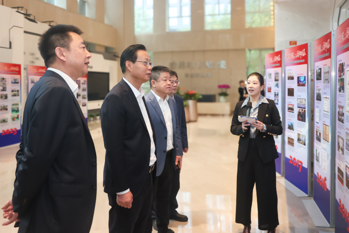 188bet金宝博 党委书记、董事长刘盛辉一行参观技术研究院建院15周年发展图片展。 施伊珏 摄