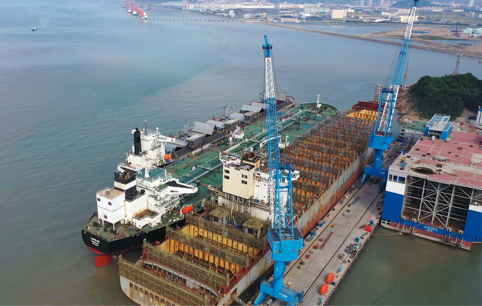 舟山华丰船厂,188bet金宝博 所属迈领公司为瑞士地中海航运公司PETRA号集装箱货轮加装脱硫装置。 李梦 提供