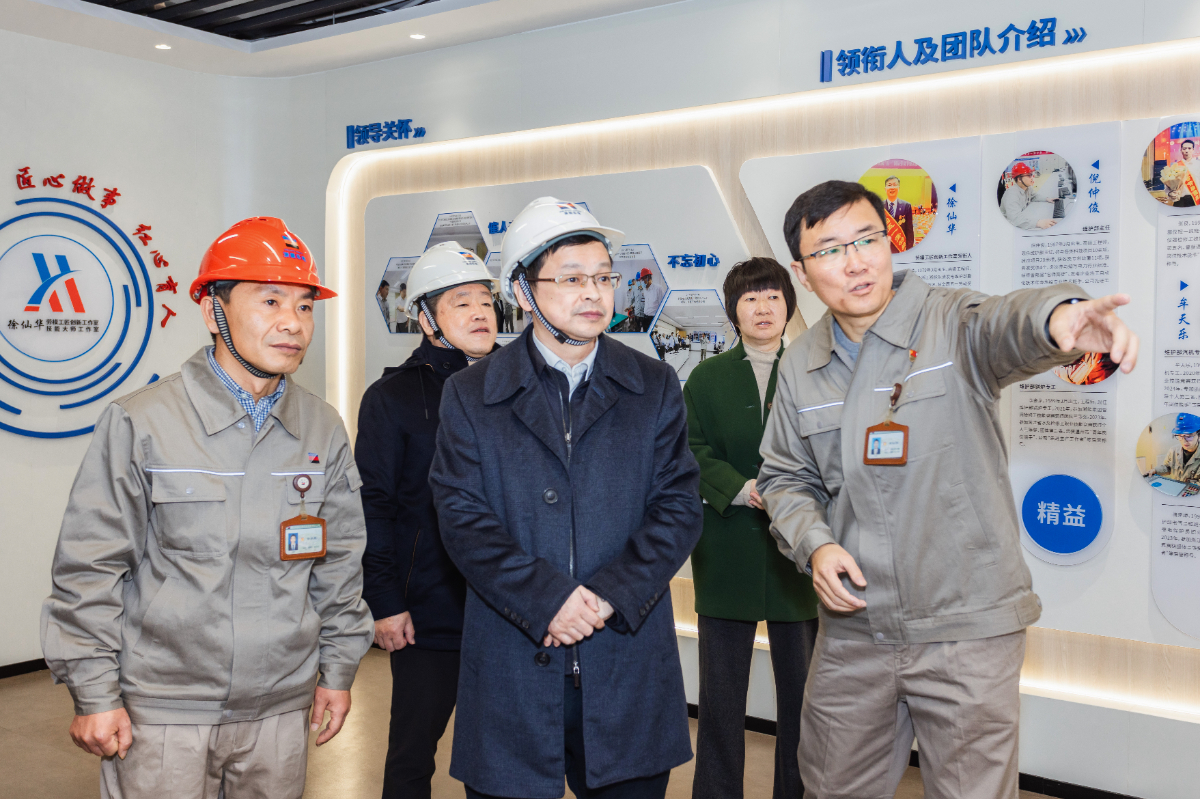 倪震一行到乐电徐仙华劳模(工匠)创新工作室参观指导。 张立忠 摄
