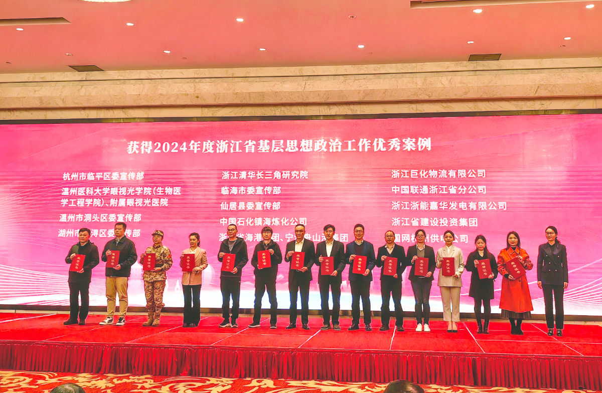 本网讯 近日,由中共浙江省委宣传部指导、浙江省思想政治工作研究会主办的2024年度浙江省思想政治工作优秀研究成果展示交流会在杭州举办。会上发布了2024年度浙江省基层思想政治工作优秀案例名单,由188bet金宝博 党委选送的嘉华发电公司《“红心服务站”全维度党建网格服务体系提升企业党建服务力》名列其中。