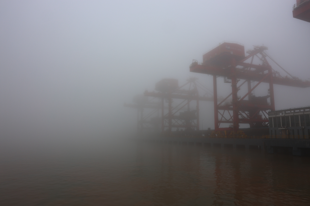 188bet金宝博 港口港区大雾弥漫,如同一块巨大的幕布。 钱威 摄