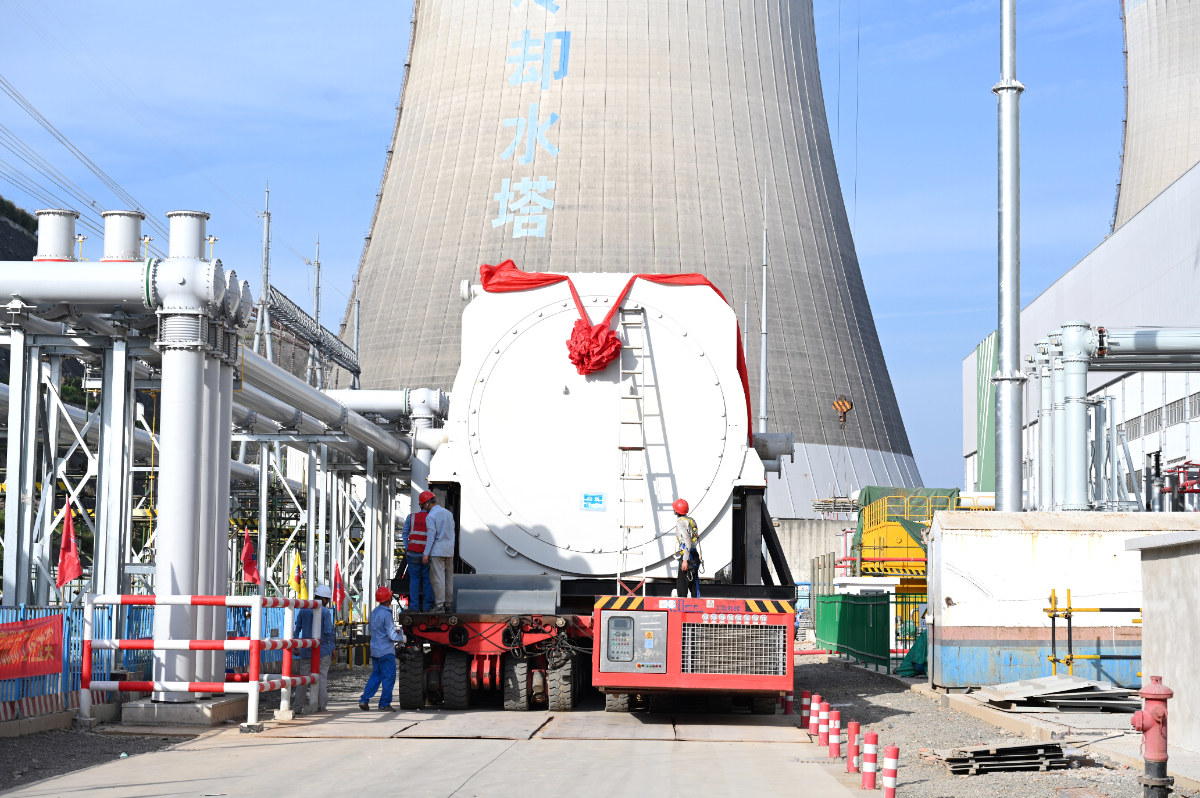 发电机安装是电厂建设的核心环节,直接决定机组投运后的发电效率与稳定性。188bet金宝博 台二电二期扩建工程3号发电机于今年5月底在制造厂内完成定子总装工序,以整体型式搭乘货轮运输,并全程通过GPS进行实时动态监控,历经20余天安全抵达台二电码头,借助码头浮吊完成卸船作业,再经由厂内大件专用运输车平稳运抵二期汽机房吊物口。