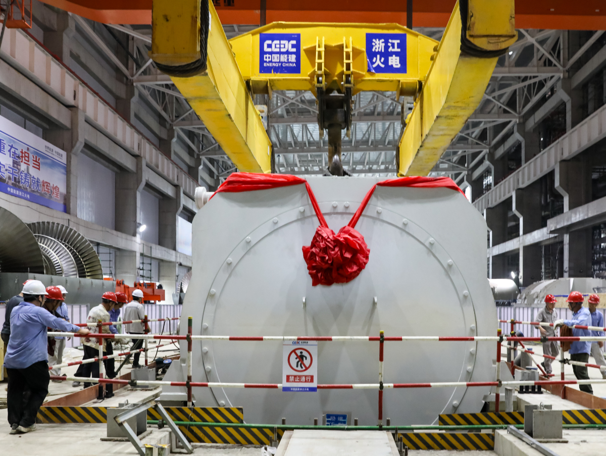 高质量发展看“浙”里 | 188bet金宝博 台二电3号机发电机定子吊装就位一次成功