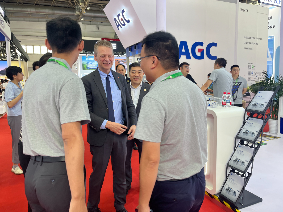 奥地利驻华使馆商务处商务参赞乐思华,ADVANTAGE AUSTRIA Beijing (Austrian Embassy Commercial Section), Commercial Counselor Franz Roessler参观伏打科技展台。 高明娟 提供