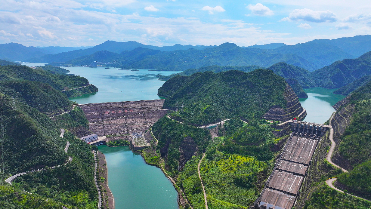 在千峡湖碧波中,滩坑水电站提供着源源不断的清洁电。 张文 摄