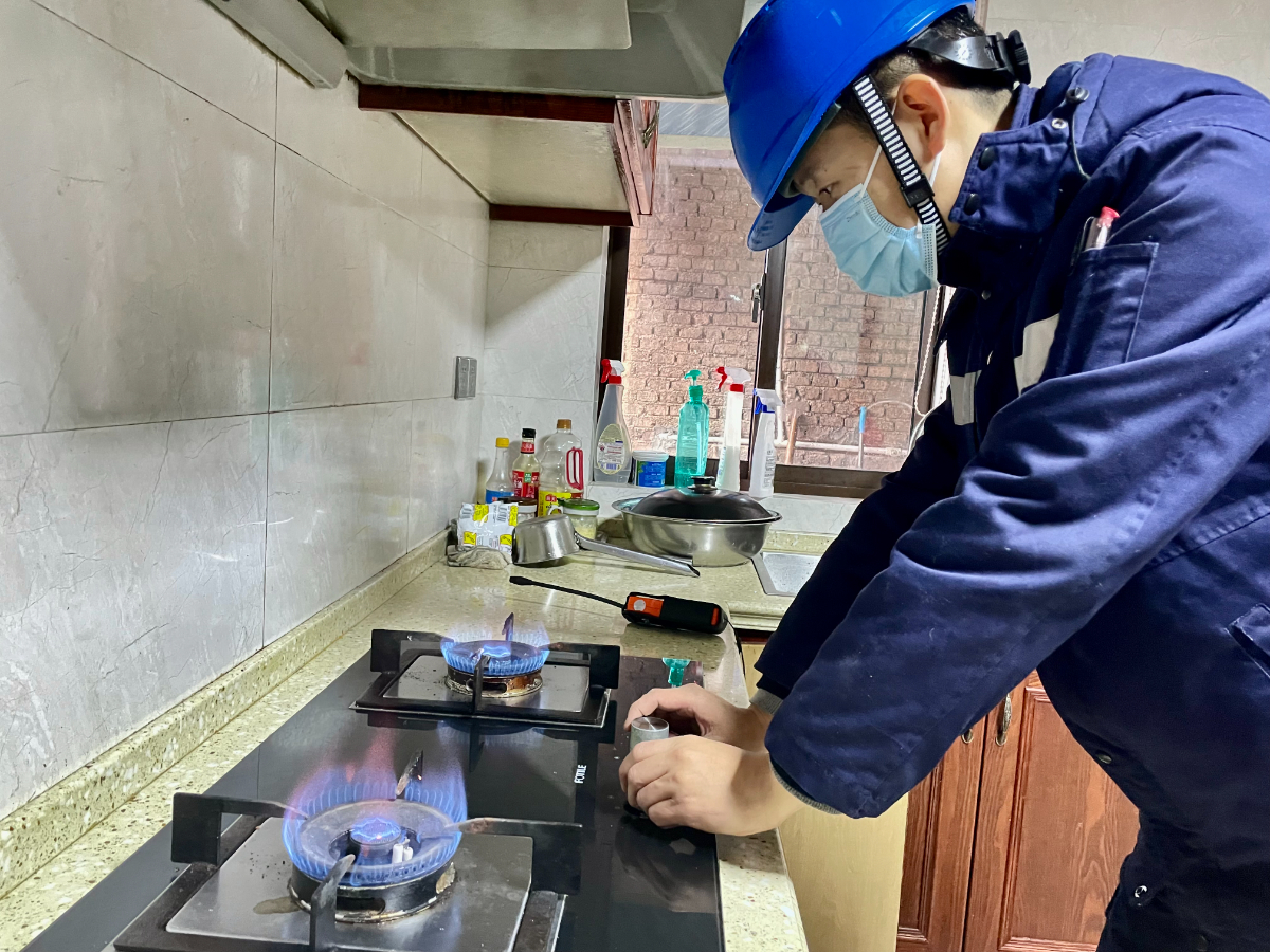 188bet金宝博 燃气安吉公司安检人员正在老小区为用户调试天然气设备,确保用气安全。 周莉琪 摄