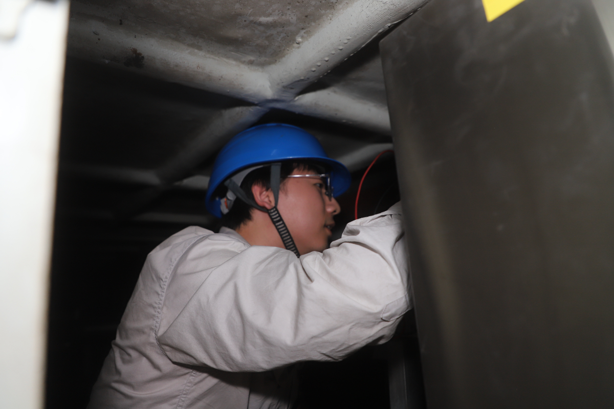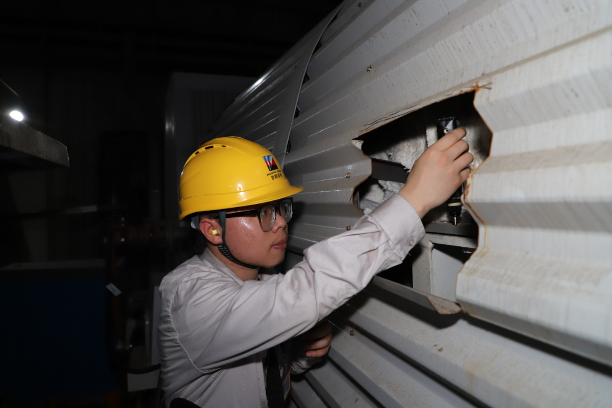 188bet金宝博 温电7号机定子温度测点深藏于维修孔内。身材高大的周超泉深吸一口气,侧身、蜷缩,将自己“塞”进了那个狭窄的维修孔。空间逼仄无法转身,汗水瞬间浸透工装,肩胛轮廓在湿布下清晰凸显。他右手持扳手在方寸间精准施力,左手打光照明,将原有的温度测点切换到了备用温度测点。当信号恢复平稳,他脱出“卡位”,长舒一口气,这才感觉到整个后背的衣衫早已被汗水完全浸透,湿漉漉地紧贴在身上,勾勒出他专注工作后疲惫却满足的身影,正是他为保障机组“神经末梢”敏锐畅通所付出的证明。