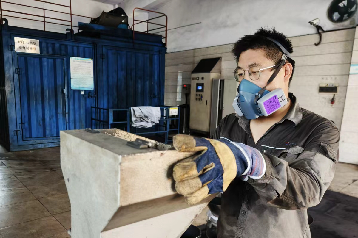 浙江越华在“热辣滚烫”中筑牢电煤保供“第一关”,图为采制人员对煤样进行破碎。 叶其彬 摄