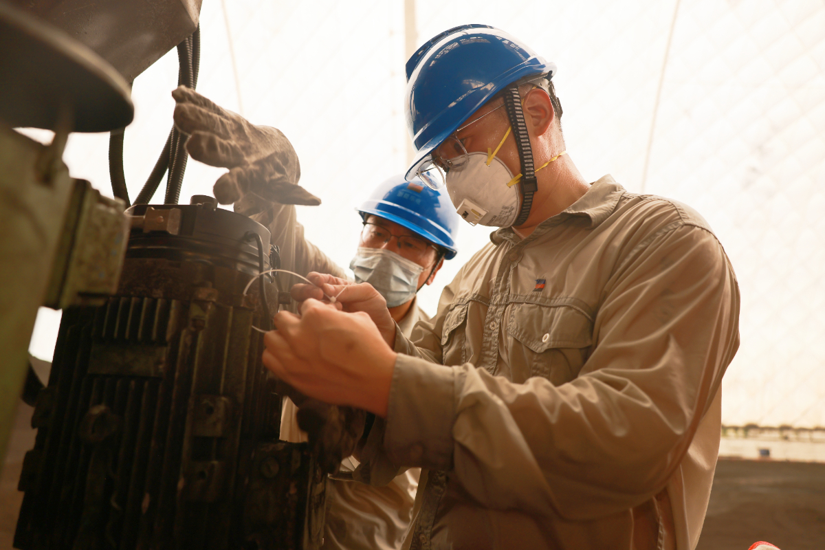 188bet金宝博 乐电燃料检修人员衣衫尽湿,牢牢守住燃煤保供防线。 陈清瑜 摄