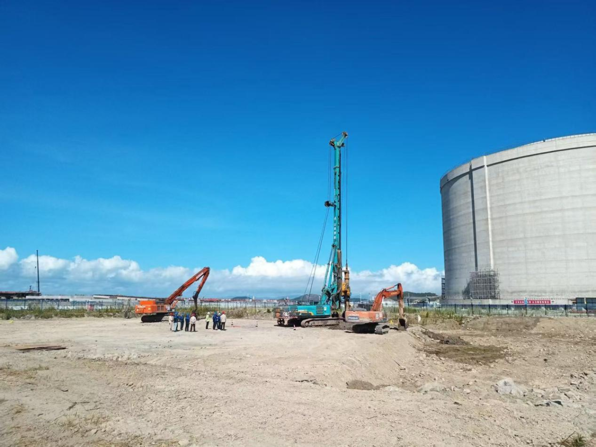 面对海域复杂的地质条件,六横 LNG 公司项目团队多次组织现场勘测和技术论证,不断优化桩基施工方案,通过采用智能旋挖钻机和泥浆护壁工艺,精准控制钻进参数,有效克服了淤泥质粉质黏土层成孔难题,保障了桩基施工质量。同时,项目团队集中技术骨干,通过销项表管理与受控会协调机制,积极推进施工许可办理、海上设备运输调度、工人进场教育等前期准备工作,为工程顺利开工奠定了坚实基础。