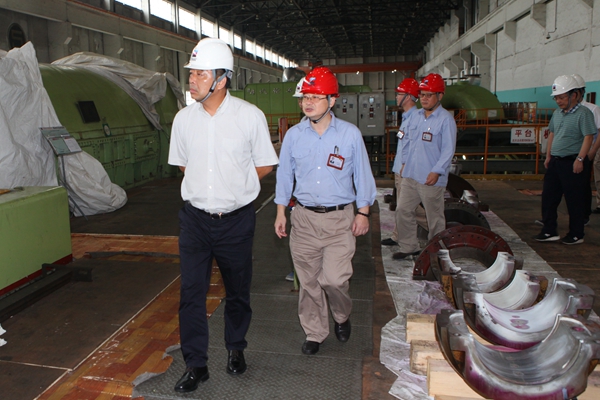柯吉欣总经理一行在镇电5号机组大修现场检查安全生产。 贺欣 摄