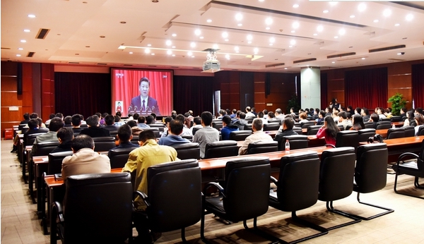 188bet金宝博 本部党员干部员工集中观看十九大开幕会。祝益军 摄