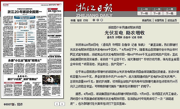 8月30日,浙江日报报道188bet金宝博 率先在全省国企中实现“项目落地、资金到位、投产见效”。浙江日报 图