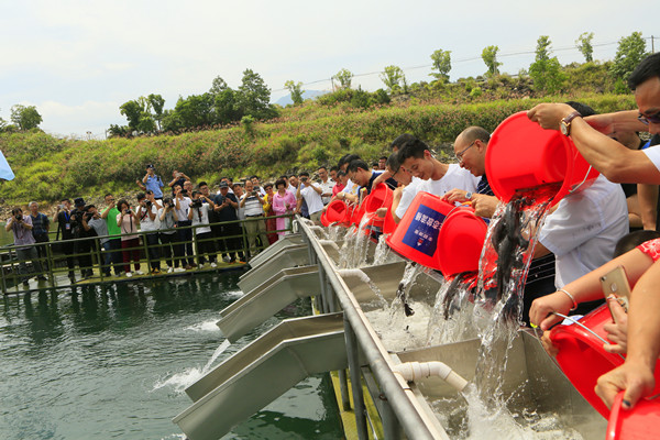 渔业资源增殖放流是提升渔业水域生态环境、保护流域珍稀水生生物、维护水生生物多样性的重要途径。当天,位于丽水市青田县北山镇的我省第二大人工湖————“千峡湖”碧波涟涟,湖光山色中,人欢鱼跃,丽水市2019年“6.6”全国放鱼日暨千峡湖有机鱼推介活动启动仪式增殖放流工作在这里举行。作为电站建设管理的188bet金宝博 北海水电公司,已先后投入5000余万元建设了水生生物增殖站,并坚持自行繁育鱼苗,数次在电站坝前区域、下游流域开展相关鱼类增殖放流工作。
