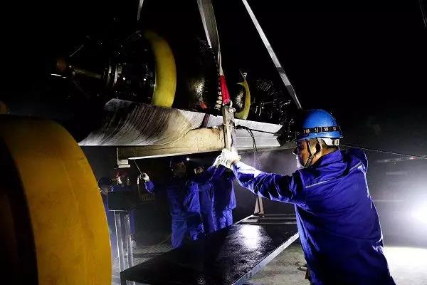 ▲188bet金宝博 天然气运行公司检测人员进行起吊作业。