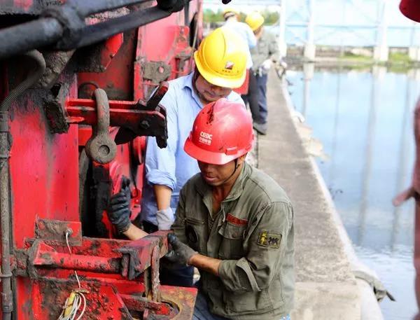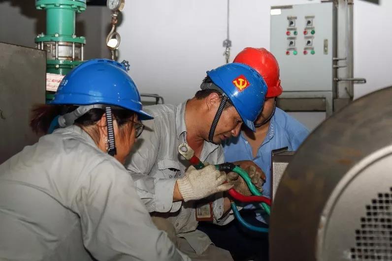 自超强台风“利奇马”10日凌晨正式登陆以来,乐清发电公司运行维护人员连夜奋战,冲锋在前,不惧急风暴雨紧急消缺,全力保障机组安全稳定运行。随着台风北上,乐清湾风雨渐息,因台风天气影响而调停的2号机组也于8月11日上午顺利启机,于17时35分迎来台风过后的首次高负荷,实时负荷255万千瓦,负荷率达96.6%。图为乐电公司在台风过后展开积极自救,该公司检修人员在抢修受损高压泵。(文/黄婉,图/方国伟)