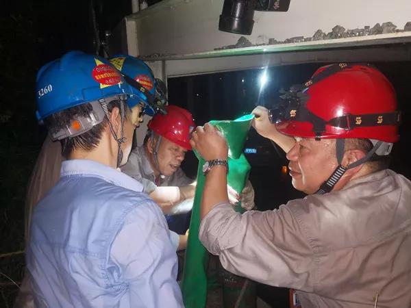 8月10日凌晨,台风登陆后,舟电公司主厂房受暴雨影响出现漏雨点、积水现象越来越多。当夜,舟电公司立即安排防台突击队、抢险待命小组赶赴现场连夜抢险,大家抓重点、找源头、堵漏点,包雨布、扛沙袋、搭雨棚,连续奋战几个小时,有力保障配电间、UPS室、电子室等区域设备的稳定运行。(文:邹咪咪,图:张效铭)