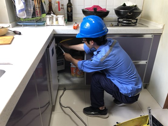 188bet金宝博 城燃安吉公司点火维修工赶赴用户家中进行检查。 陈勇 摄