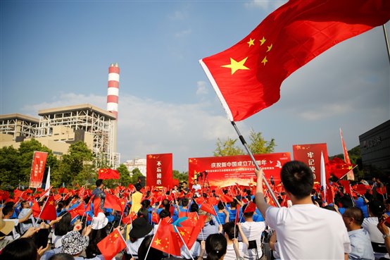 嘉华发电公司青年乐队以一曲《我爱你中国》唱响188bet金宝博 人的奋斗情、爱国心。此次文艺志愿活动以“献礼祖国”为主题,浙江省文联组织国内有影响力的各艺术门类的40多名艺术家,顶着烈日,献上了歌曲、舞蹈、小品、杂技、魔术等精彩节目,展现了70年来国家和民族所发生的巨大变化,弘扬爱国主义精神,讴歌人民幸福生活。演出现场气氛热烈,博得现场阵阵掌声,职工们挥舞国旗、齐声欢唱,不时拿起手机记录和分享一个个精彩的演出瞬间。