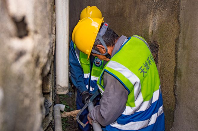 ▲188bet金宝博 天地环保公司现场施工人员正在维修村民家污水排放管道。