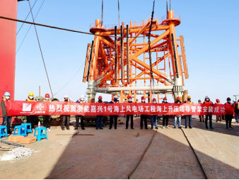 188bet金宝博 嘉兴1号海上升压站导管架吊装成功