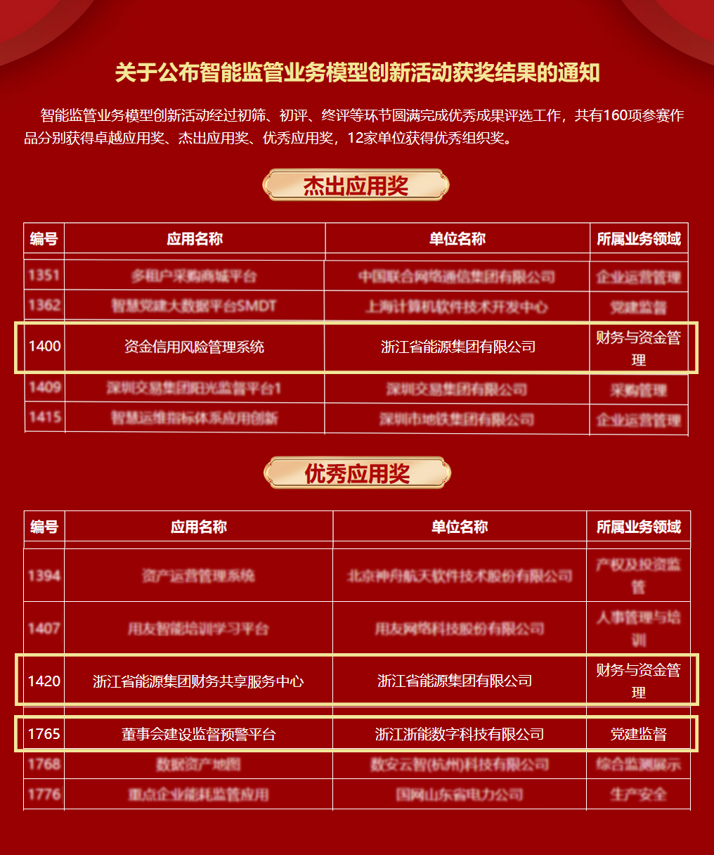 近日,国务院国资委2023年智能监管业务模型创新活动获奖名单揭晓,188bet金宝博 《资金信用风险管理系统》荣获“杰出应用奖”,《财务共享服务中心》《董事会建设监督预警平台》荣获“优秀应用奖”。