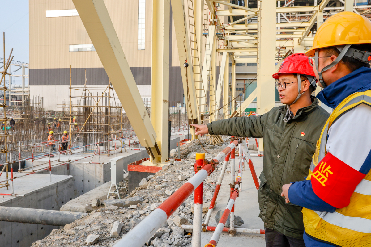 2月10日大年初一,在188bet金宝博 嘉电四期扩建项目工地上,建设单位、监理等各方人员仍按照排值班计划准时到岗到位,多台塔吊和吊机配合,将施工材料精准放置工地各处,随处可见工人忙碌的身影。“春节前天气情况不好,雨水较多,不利于现场施工,趁着现在天气晴好,大家分秒必争,节假日期间每天有300多人驻守作业,工程部、质安部‘1+4’模式全天候、多专业协同管理,确保各个作业区井然有序。”据嘉电四期工程部主任方亮介绍,自9号机组锅炉房首根钢结构吊装就位以来,工程施工现场全体建设人员保持高涨的工作激情,机组建设按节点计划推进,锅炉房首层钢结构吊装进展达预期,出线门架桩基、循环水虹吸井及管道、主厂房基础、电除尘基础等同步施工。