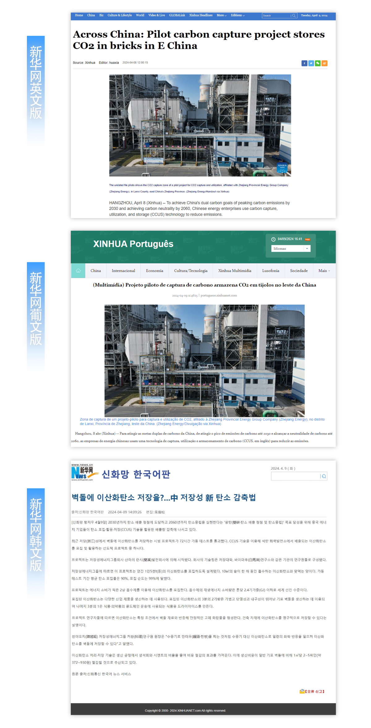 4月8日,中国网英文版报道《Across China: Pilot carbon capture project stores CO2 in bricks in E China》。 中国网 图