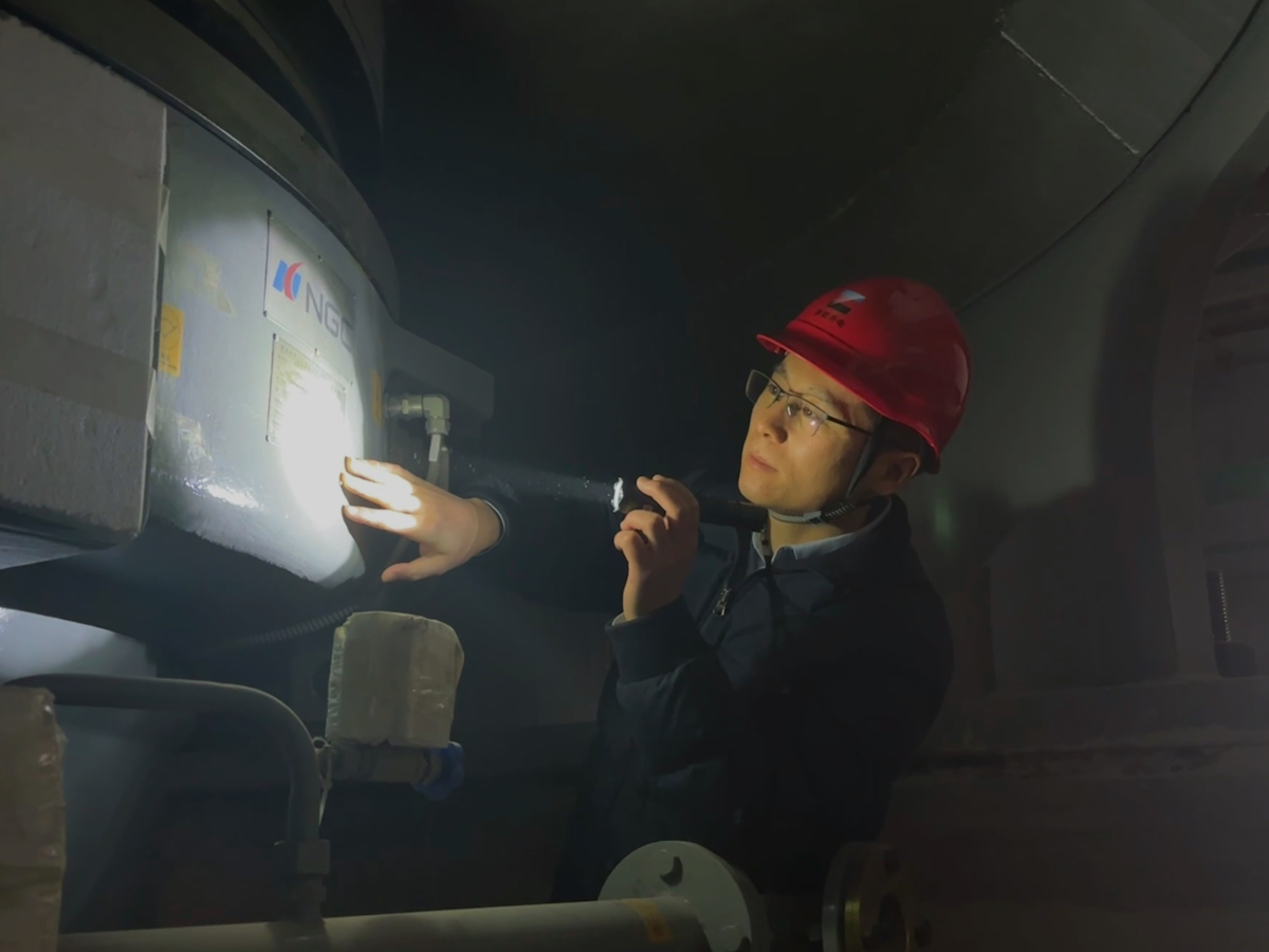舟山煤电公司工程部机务主管王庆多年坚守在岗位上度过新年。 陈思颖 摄