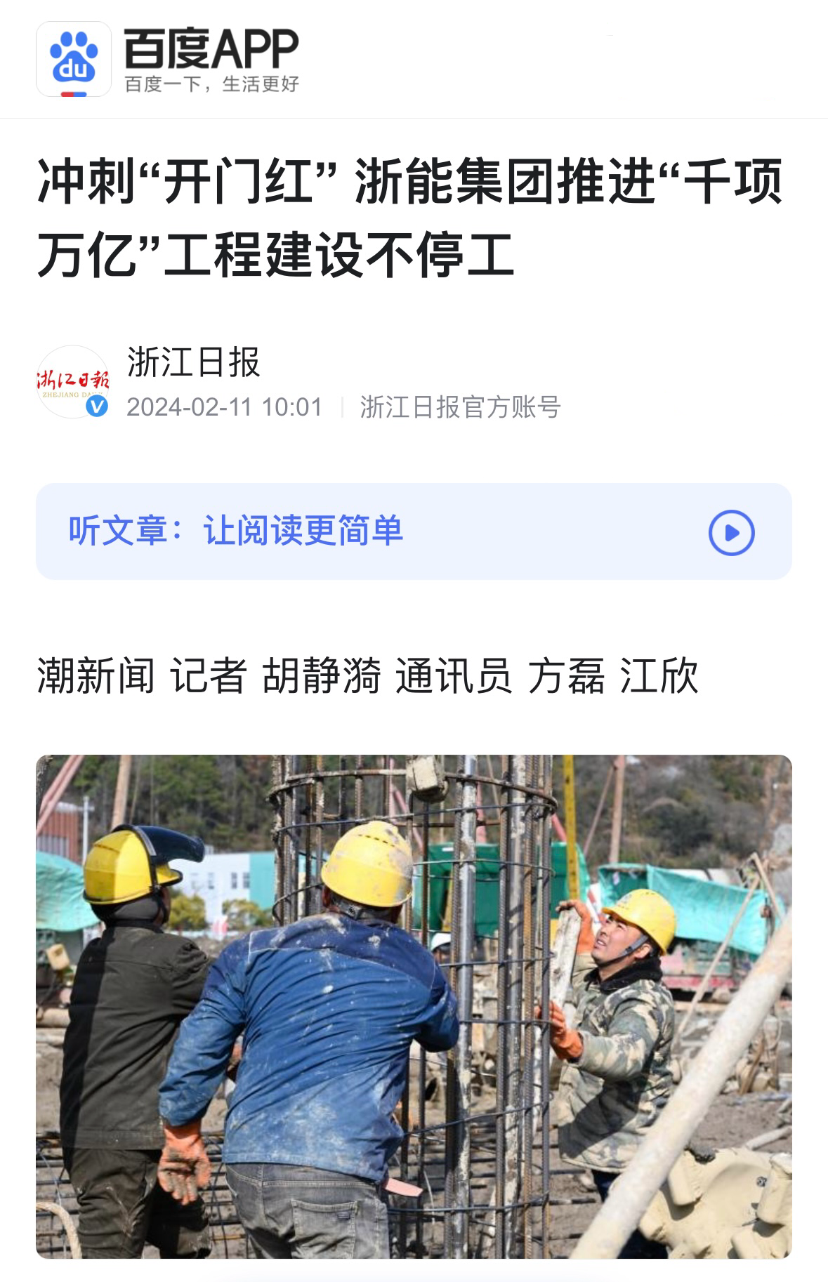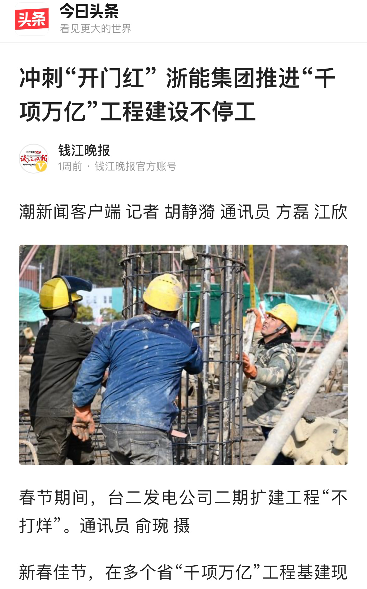 浙江国资公众号报道《冲刺“开门红”188bet金宝博 推进“千项万亿”工程建设不停工》。 浙江国资公众号 图